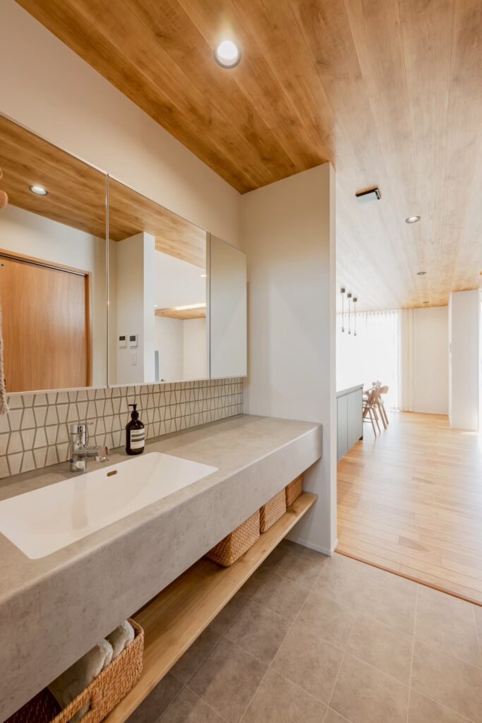 キッチンからランドリールーム・お風呂などにも回遊できる動線で、毎日の家事もスムーズに。