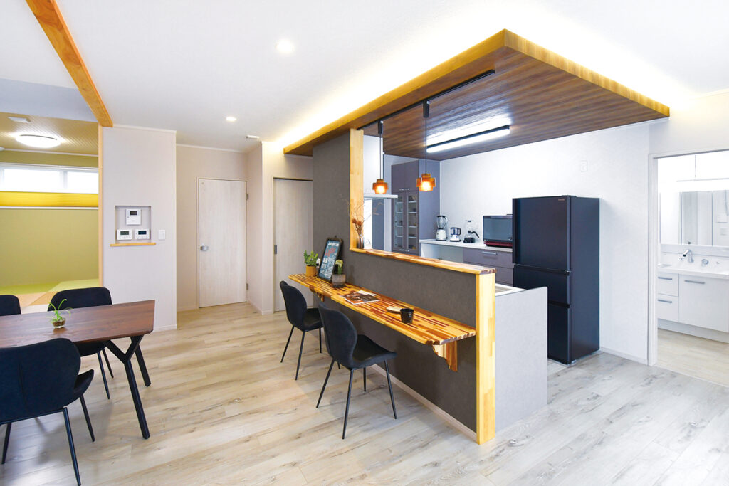 暮らしやすさを追求した間取りや動線のほか、部屋ごとに異なる床材やクロス、収納扉や建具選びなど、実際の色や質感の比較ができるのも提案型モデルハウスのメリット。また最新の設備機器のほか、大工職人による収納棚やカウンターの造作も見どころの一つ。