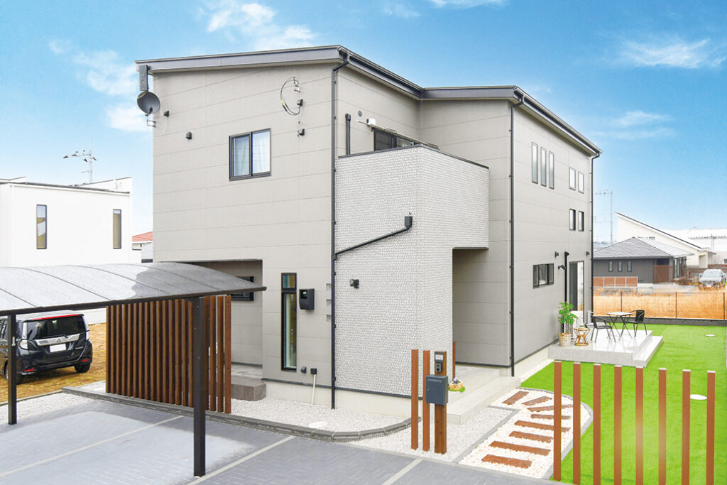 立地の良さを気に入り、閑静な分譲地を購入したご夫妻。どんな家にしようか、SNSを見ては二人で夢を膨らませていたところ、ご主人のお父さまから武井建設を紹介された。お父さまと高橋伸武社長が同級生という縁で、ご実家を建設したのも武井建設。ご夫妻は高橋社長と社長の奥さまの人柄にひかれたこと、モデルハウスや同社が手掛けた家を見学してバリエーションの豊富さに感心し、自分たちの家づくりにも柔軟に対応してくれそうだと感じて依頼することに決めた。