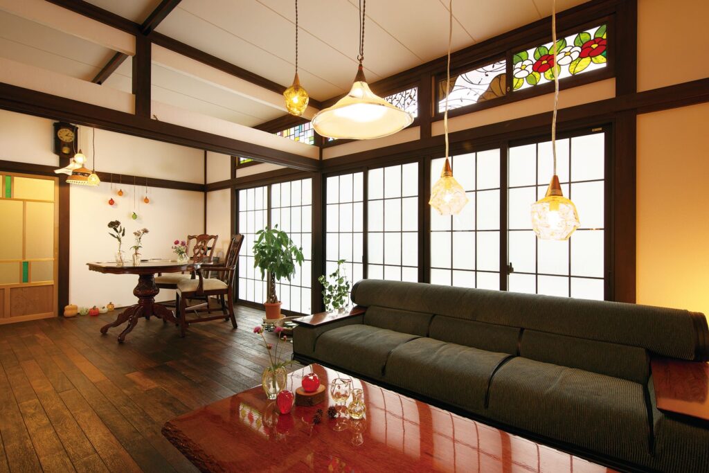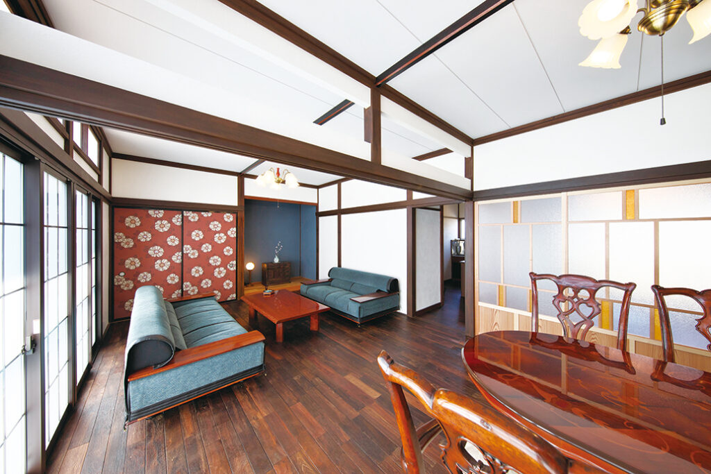 「古民家リノベーション」とは、築年数の経った建物に修正補強工事を行うことで、住まいの性能や快適性、デザイン性などを現代的にアップグレードし、物件価値や生活クオリティーを高める手法。モダン、レトロ、ホビーなどオーナーさまの個性が生き、よみがえる再生住宅となる。古き良きものをアレンジしさらに充実した生活のための住まいを創造している。