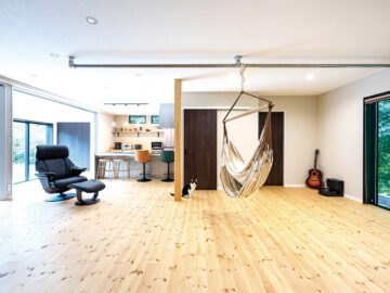 生活動線を考え、廊下を広くゆとりのある空間に仕上げました。床と建具は無垢材を使用。