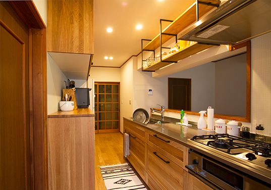 無垢の木のキッチンを楽しむ。 お手入れしやすい仕様。