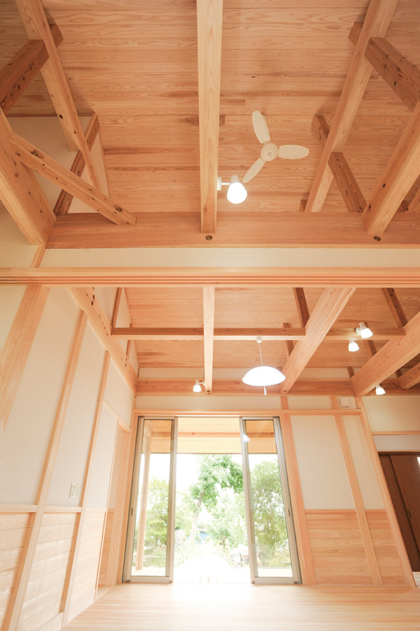 岡田木材は材木業として創業。荒廃していく山林を見て、「山をよくしたい」と岡田隆治社長が家づくりを始めた。樹齢100年以上の良質な県産の無垢材を十分に自然乾燥させ、伝統的な木造軸組工法による家づくりを基本とする。見えない部分も質の高い木材で頑丈に仕上げ、大胆な木の現しの家からデザイン性の高いモダンな家まで対応する。