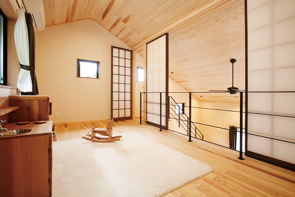 ダイナミックな木組みと長期優良住宅を仕様にした空間づくりに定評のある野積基子所長と女性建築士が設計を担当している。
