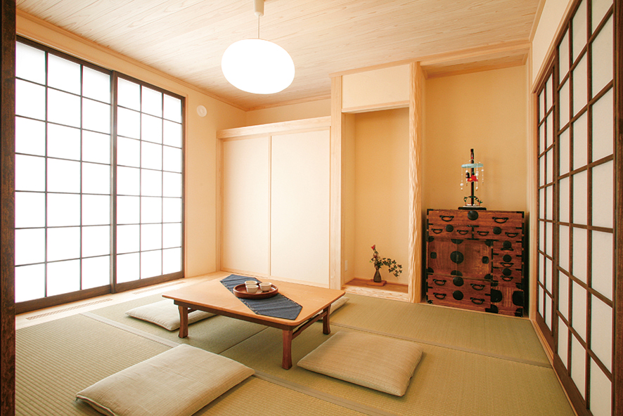 「住むほどに、暮らすほどに楽しい家づくり」をコンセプトに県産材を中心に厳選した無垢の木と、漆喰や和紙などの上質な自然素材を組み合わせ、確かな職人技術で仕上げる家を提案する野積建設。