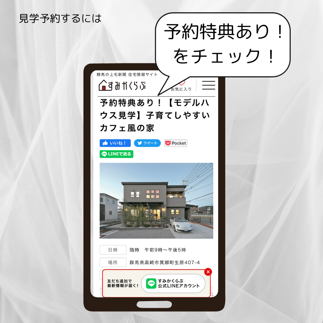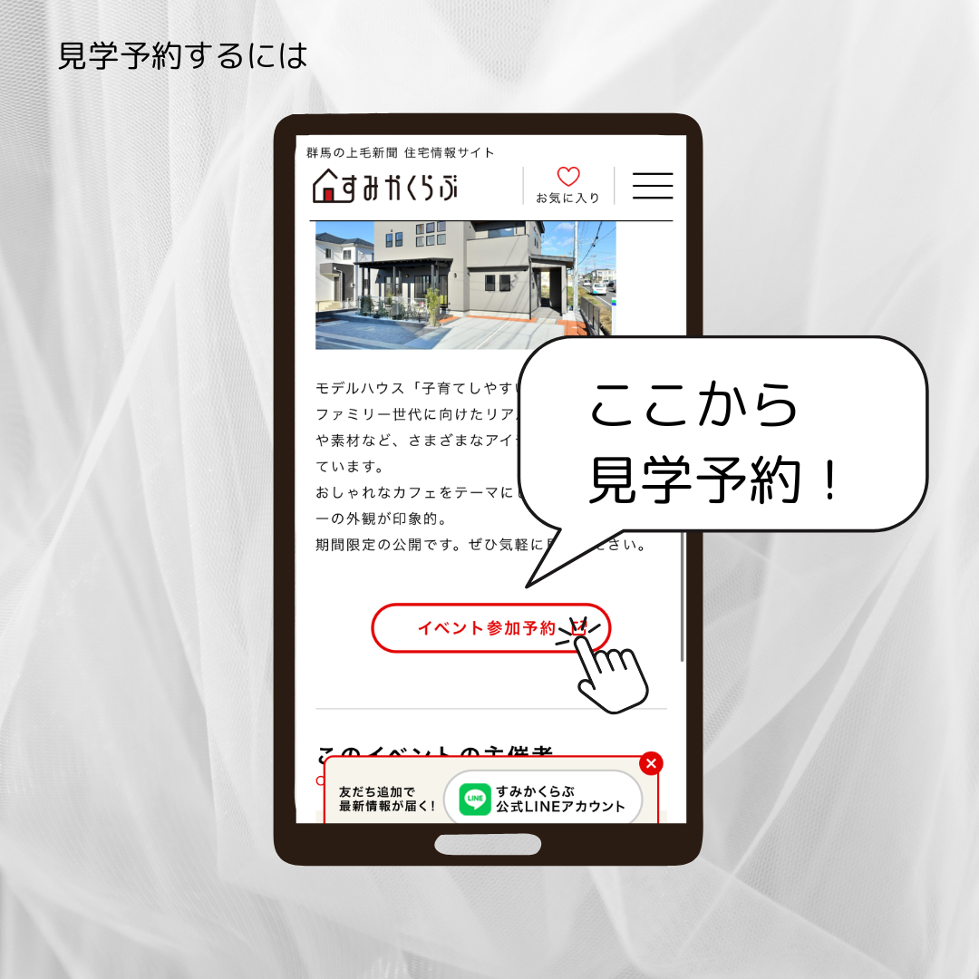 「予約特典あり!」のイベントページから、モデルハウスの来場を予約してください。
