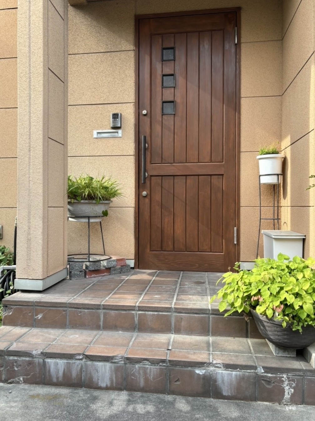 この度、屋上修理と外壁・屋根塗装、玄関ドア交換、タイルの張り替え、庭のリベーションをお願いしました。