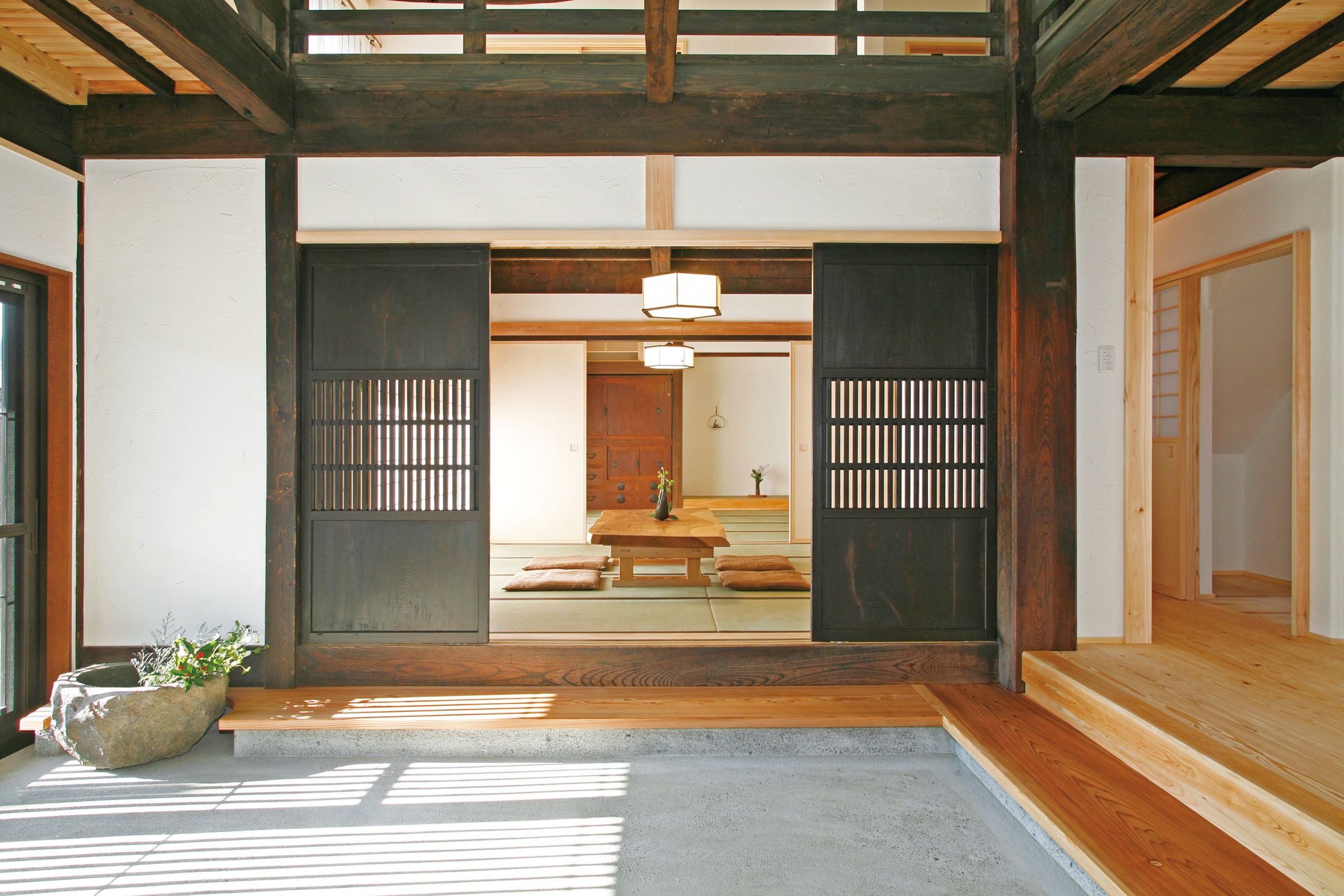 檜や杉の香り豊かさに加えて漆喰や和紙で仕上げて確かな職人の技術による木組みの家を造り続けて今年創業125年を迎えた野積建設。神社仏閣を手がけてきた匠の技を腕の立つ大工職人が今に受け継ぐ。本物の自然素材と上質なデザインが相まった住まいは優しい温もりや癒しをもたらし、新建材とひと味違った風情を醸し出す。