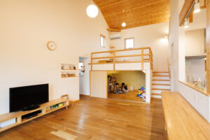 設計にはパッシブデザインの手法を取り入れ、土地環境を考慮し、光・風・熱の出入りを間取りや配置に落とし込む。高気密・高断熱にこだわり、全棟気密測定を実施することで、快適さを数値化。国の定め