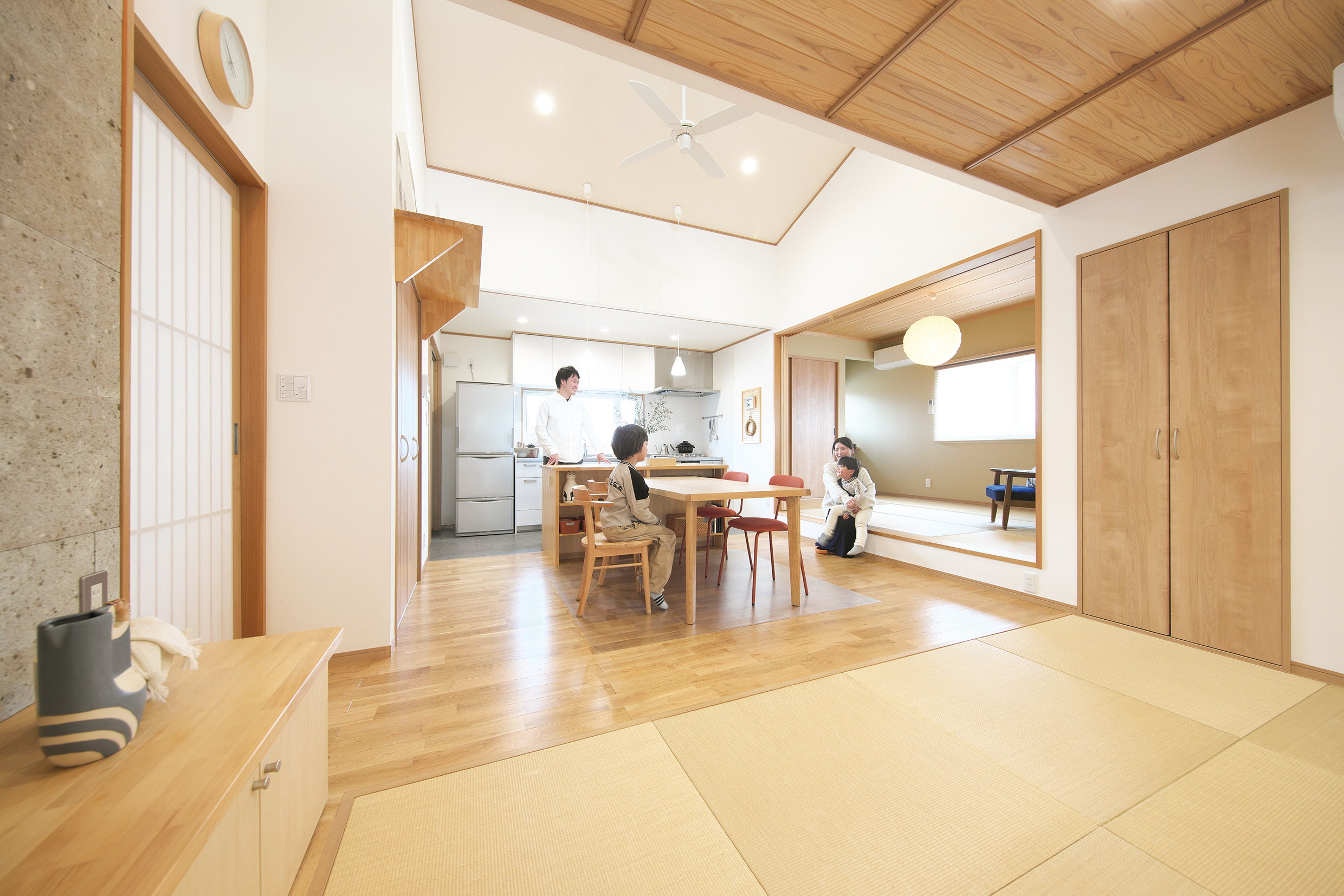 設計室を併設した工務店であることが当社の長所であり、モダンから和風まで多彩な方向性のノウハウを持ち、自然素材と伝承技術を兼ね備えたデザイン住宅を追求してきました。設計と施工の一体化を図り、施主様のご要望をさらに発展させた空間づくりを心がけ、建具・外構に至るまで内製化しています。ぜひ一度、当社の施工事例をご見学ください。