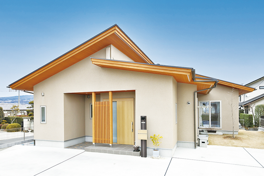 土田工務店は、TAKE一級建築室を併設し、デザイン住宅への対応力を大きな特長とする。一級建築士でもある土田猛社長が設計・デザインを担う。施主の要望に基づき、和モダンやシンプルモダン、ナチュラルなど多彩な引き出しで対応する。美しいシルエットと巧みな空間設計が際立つ家づくりだ。