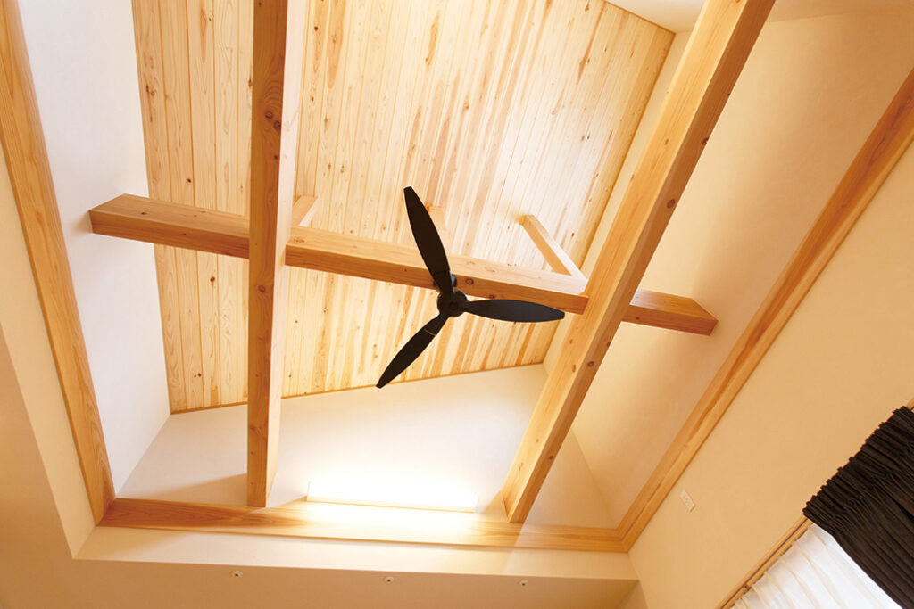 伝統的な建築手法で「本物の木の家」を追求する山崎工務店。同社の「在来骨太住宅」は、太い柱や頑丈な構造が特徴で、使う木にこだわった家づくりを示している。見えない部分にも高品質な無垢材を用い、太い構造材で造る頑丈な骨組みは強い耐震性を発揮する。予測不能な災害から身を守るのも住宅性能の重要な要素で、その強さは日々の安心・安全につながっている。