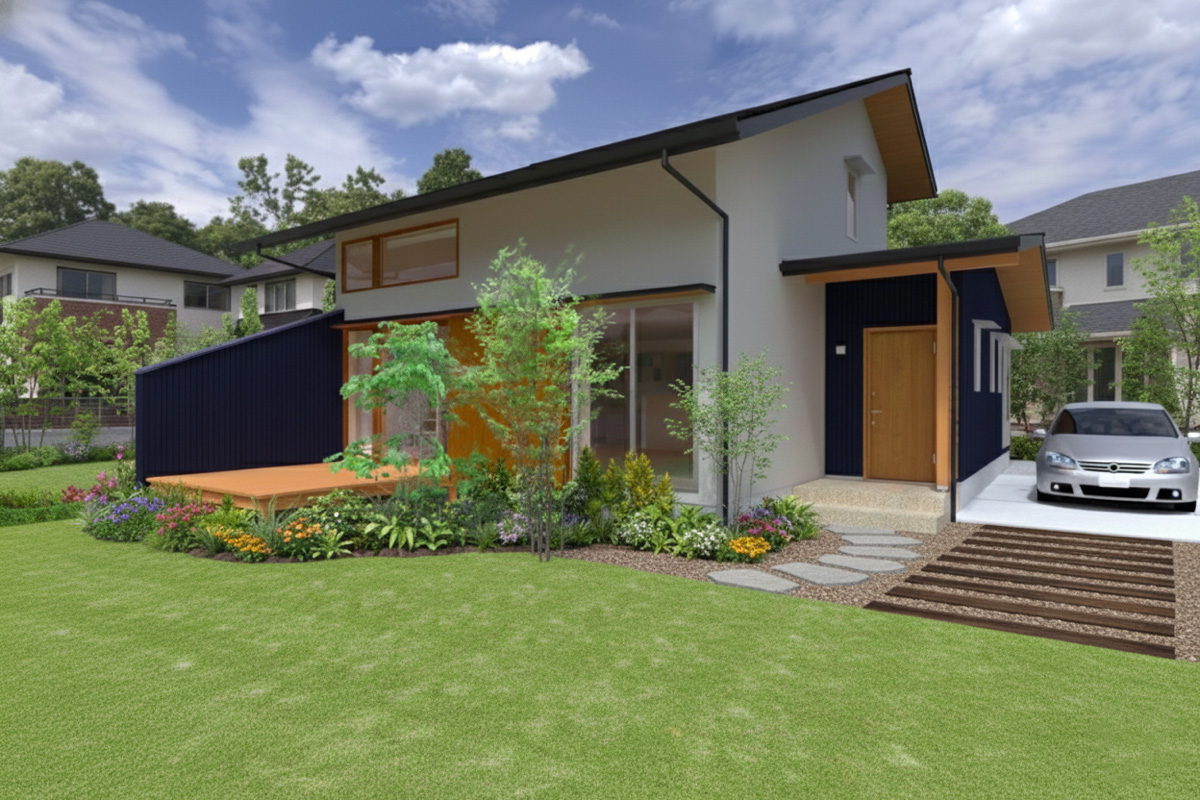 将来平屋として暮らせる大屋根の家。大屋根(への字屋根)+αな二階建てで、大きな吹き抜けと二階の窓から差し込む光で開放的で明るい空間が魅力です。ぜひご覧ください