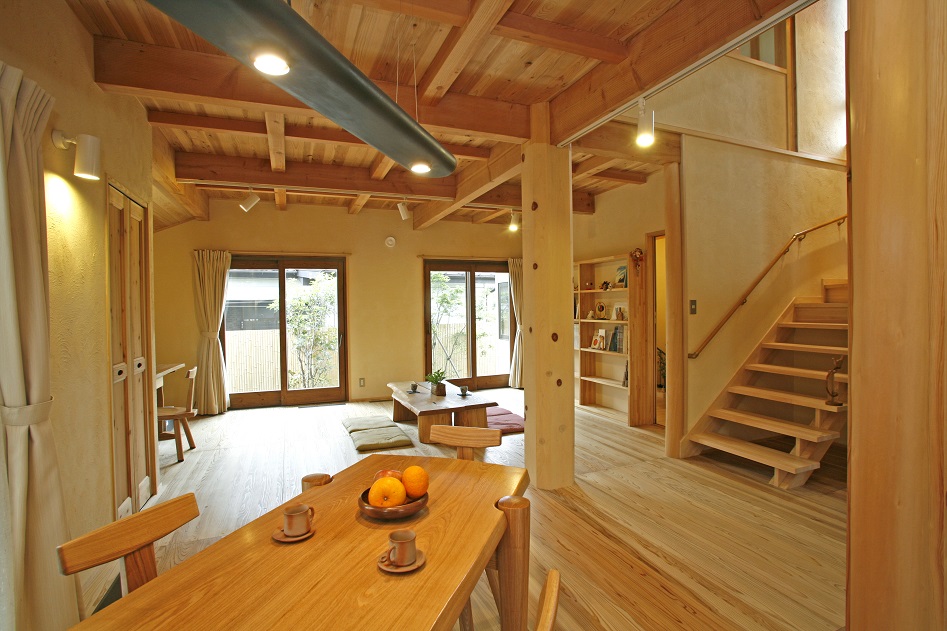 木の香りを感じられる展示場です。桧や杉などの無垢素材や漆喰壁などの自然素材を見て触って体感ください。