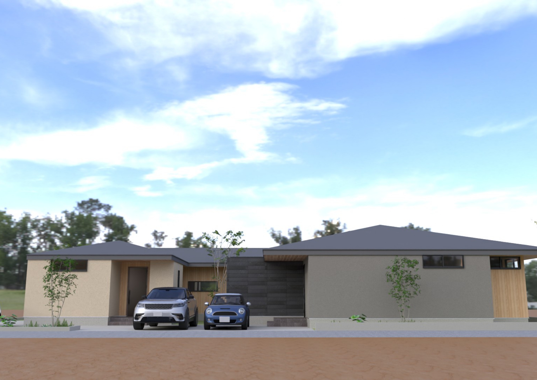 省エネ性・快適性を追求しながら開放感を実現し、外部からの視線にも配慮した形状や、両世帯から眺められる中庭、軒を深く出し内部とつなげた杉板貼が見どころです